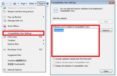 2. In the Websites you’ve added to Compatibility View area, select ezvizlife.com and click Remove to delete it.