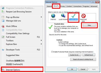 3) Click Sites to enter the Trusted sites window.