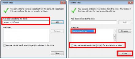 4) Enter www. ezvizlife.com in the Add this website field and click Add to add it as a trusted site.