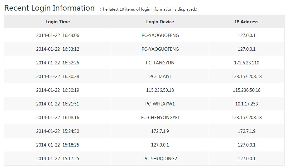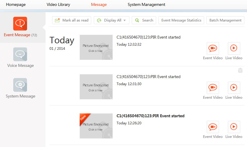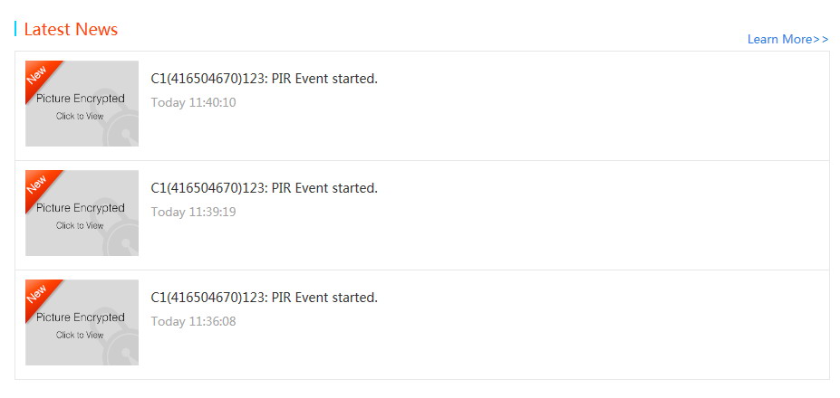 After your successful login to ezviz, you will see the 3 most recent messages on the page.