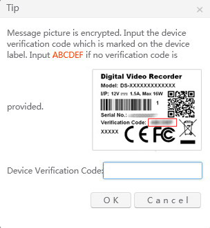 Click the picture icon to view the encrypted video by entering the device verification code in the following interface:
