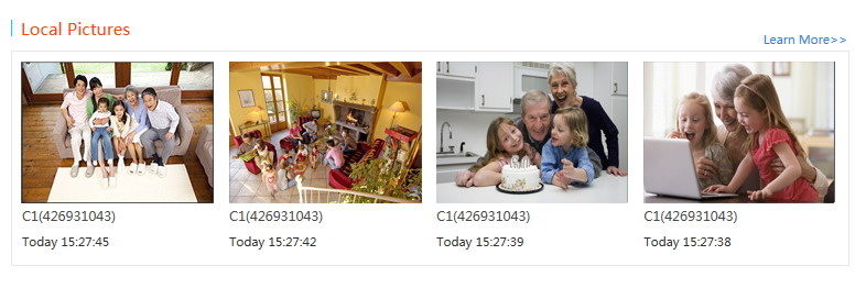On the Video Library>Local Pictures page, you can view the captured pictures and recorded video files saved in local computer.